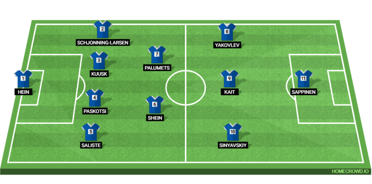 Probable Lineup (4-2-3-1): Hein; Schjonning-Larsen, Kuusk, Paskotsi, Saliste; Shein, Palumets; Yakovlev, Kait, Sinyavskiy; Sappinen