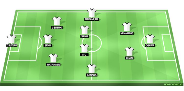 Probable Lineup (3-4-2-1): Zion Suzuki; Seko, Watanabe, J Suzuki; Ito, Sano, Tanaka, Nakamura; Doan, Minamino; Ogawa