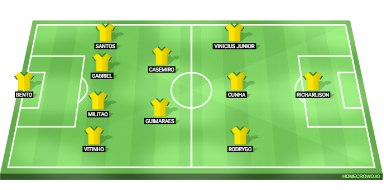 Carlo Ancelotti also does not have any fresh injury concerns to worry about, and he could also stick with a similar XI to the one that started against South Korea. Brazil will line up in a 4-2-3-1 formation, where Bento will be in goal.