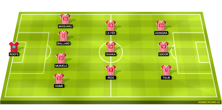Probable Lineup (4-3-3): Roefs; Hume, Mukiele, Ballard, Masuaku; Rigg, Xhaka, Le Fee; Talbi, Isidor, Adingra