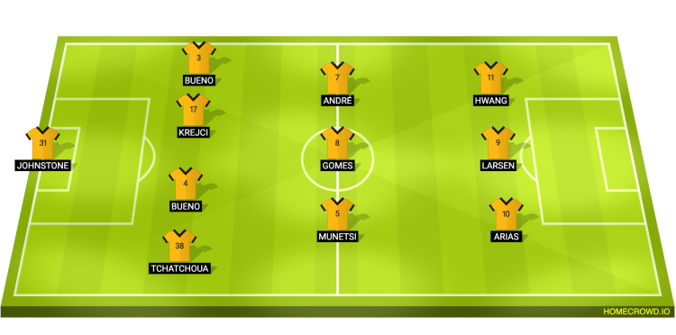 Probable Lineup (4-3-3): Johnstone; Tchatchoua, S. Bueno, Krejci, H. Bueno; Munetsi, J. Gomes, Andre; Arias, Strand Larsen, Hwang