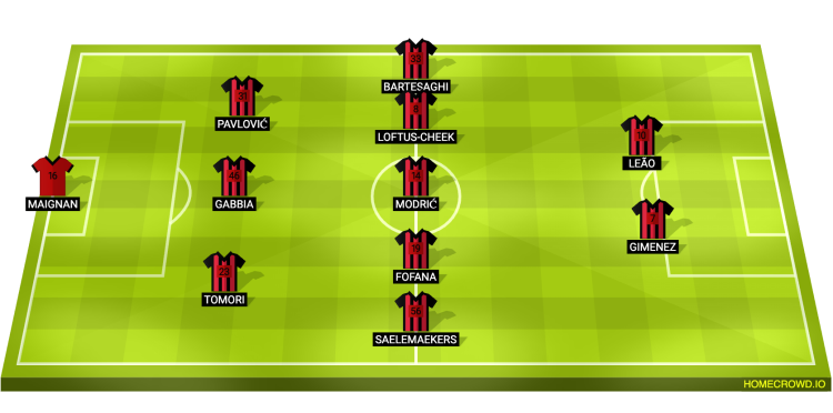 Probable Lineup (3-5-2): Maignan; Tomori, Gabbia, Pavlovic; Saelemaekers, Fofana, Modric, Loftus-Cheek, Bartesaghi; Gimenez, Leao