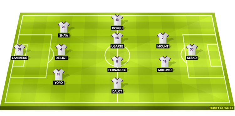 Predicted Manchester United XI: Lammens; Yoro, de Ligt, Shaw; Dalot, Bruno Fernandes, Ugarte, Dorgu; Mbeumo, Mount; Sesko