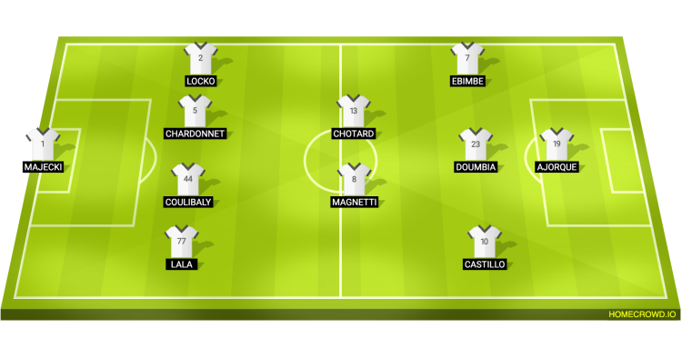 Probable Lineup (4-2-3-1): Majecki; Lala, Coulibaly, Chardonnet, Locko; Magnetti, Chotard; Castillo, Doumbia, Ebimbe; Ajorque