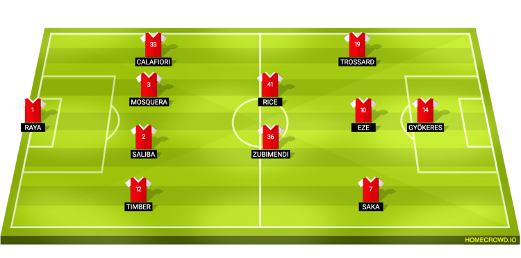 Probable Lineup (4-2-3-1): Raya; Timber, Saliba, Mosquera, Calafiori; Zubimendi, Rice; Saka, Eze, Trossard; Gyokeres