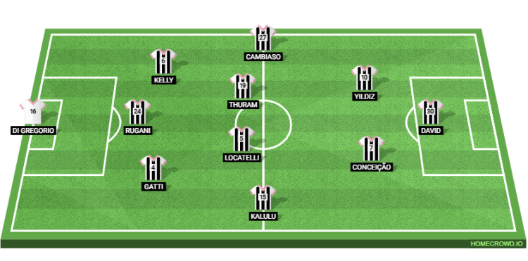 Probable Lineup (3-4-2-1): Di Gregorio; Gatti, Rugani, Kelly; Kalulu, Locatelli, Thuram, Cambiaso; Conceicao, Yildiz; David