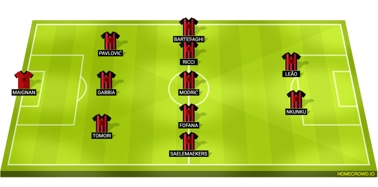 Probable Lineup (3-5-2): Maignan; Tomori, Gabbia, Pavlovic; Saelemaekers, Fofana, Modric, Ricci, Bartesaghi; Nkunku, Leao