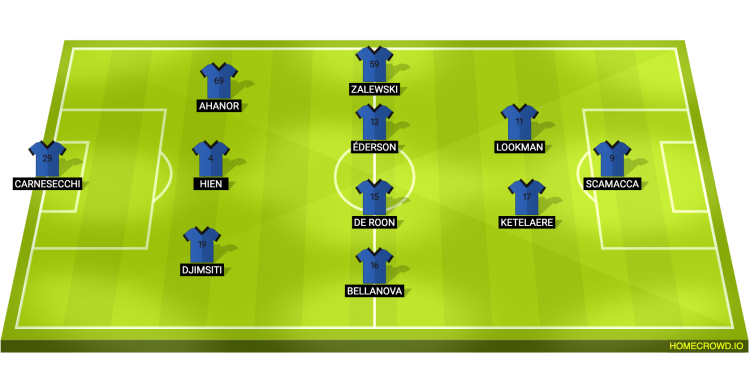 Probable Lineup (3-4-2-1): Carnesecchi; Djimsiti, Hien, Ahanor; Bellanova, Ederson, De Roon, Zalewski; De Ketelaere, Lookman; Scamacca