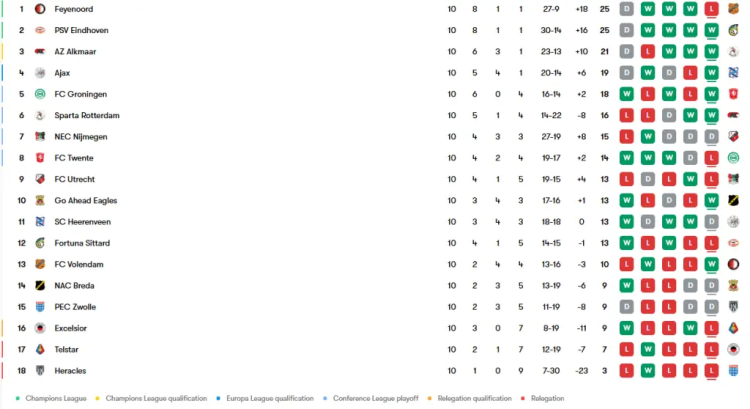 10 games down in the Eredivisie and this past weekend saw a clash between the title favourites in PSV and Feyenoord. At the other end, Heracles are looking destined for the drop already.