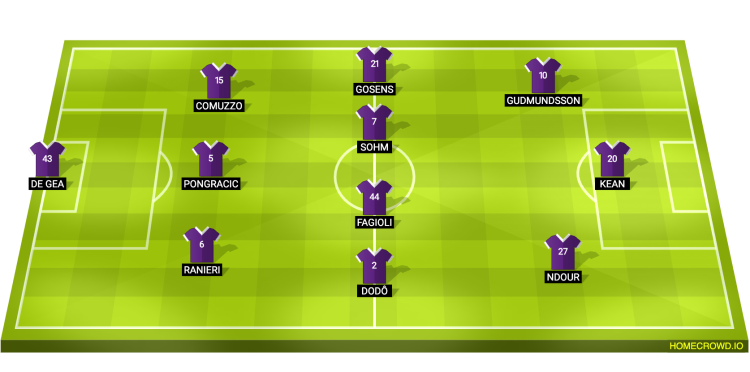 Probable Lineup (3-4-3): de Gea; Ranieri, Pongracic, Comuzzo; Dodo, Fagioli, Sohm, Gosens; Ndour, Kean, Gudmundsson