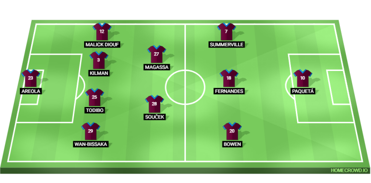 Probable Lineup (4-2-3-1): Areola; Wan-Bissaka, Todibo, Kilman, Diouf; Soucek, Magassa; Bowen, Fernandes, Summerville; Paqueta