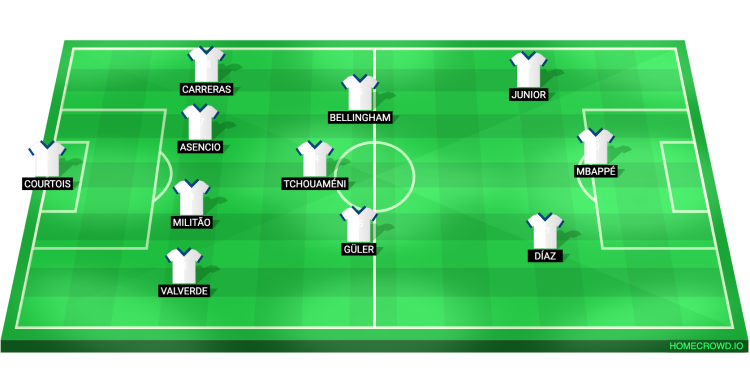 Probable Lineup (4-3-3): Courtois; Valverde, Militao, Ascencio, Carreras; Bellingham, Tchouameni, Guler; Diaz, Mbappe, Vinicius Junior