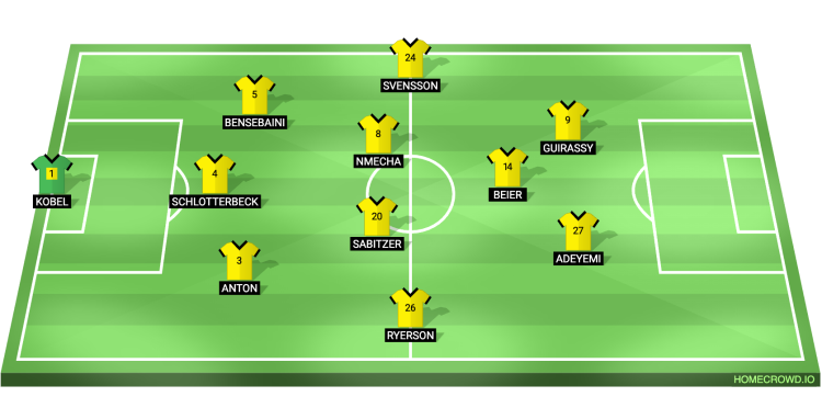 Probable Lineup (3-4-1-2): Kobel; Anton, Schlotterbeck, Bensebaini; Ryerson, Sabitzer, Nmecha, Svensson’ Beier; Adeyemi, Guirassy