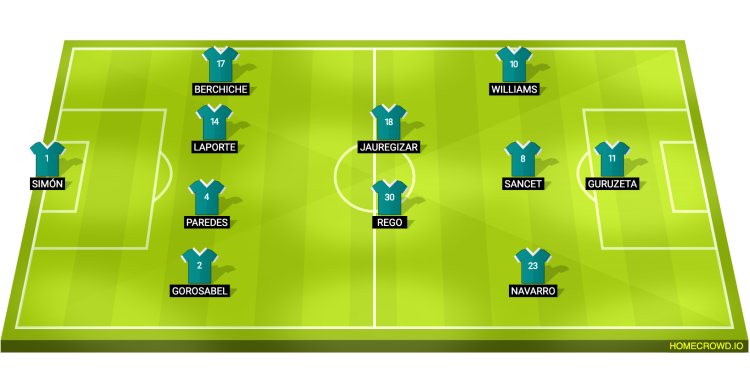 Probable Lineup (4-2-3-1): Simon; Gorosabel, Paredes, Laporte, Berchiche; Rego, Jauregizar; N. Williams, Sancet, Navarro; Guruzeta