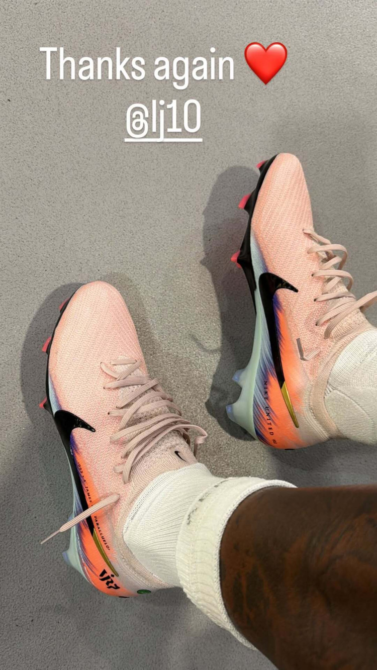 Vinicius posted a picture of himself wearing the boots on his Instagram story with the message ‘Thanks again’, tagging James. The England forward reposted it on her own story with the caption ‘002’.