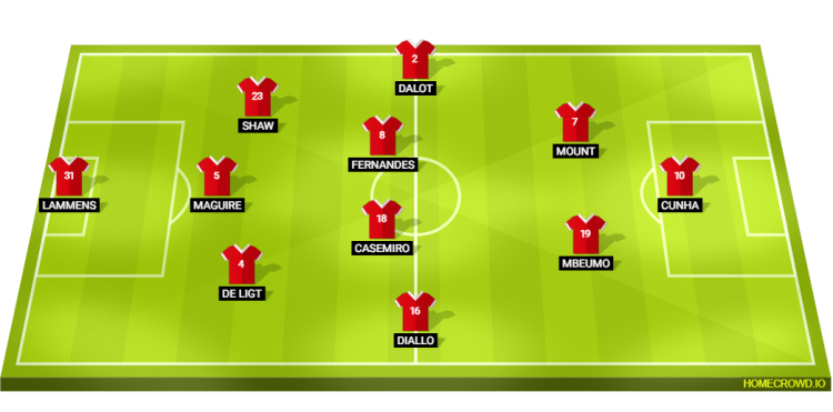 Predicted Manchester United XI: Lammens; de Ligt, Maguire, Shaw; Amad, Casemiro, Bruno Fernandes, Dalot; Mbeumo, Mount; Cunha