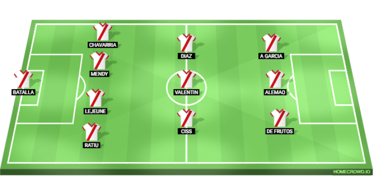 Probable Lineup (4-3-3): Batalla; Ratiu, Lejeune, Mendy, Chavarria; Ciss, Valentin, Diaz; De Frutos, Alemao, Alvaro Garcia