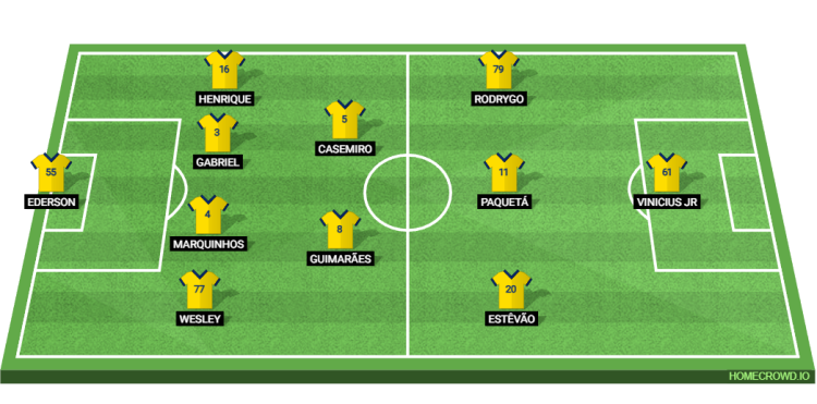 Probable Lineup (4-2-3-1): Ederson; Wesley, Marquinhos, Gabriel, Henrique; Casemiro, Guimaraes; Estevao, Paqueta, Rodrygo; Vinicius Jr