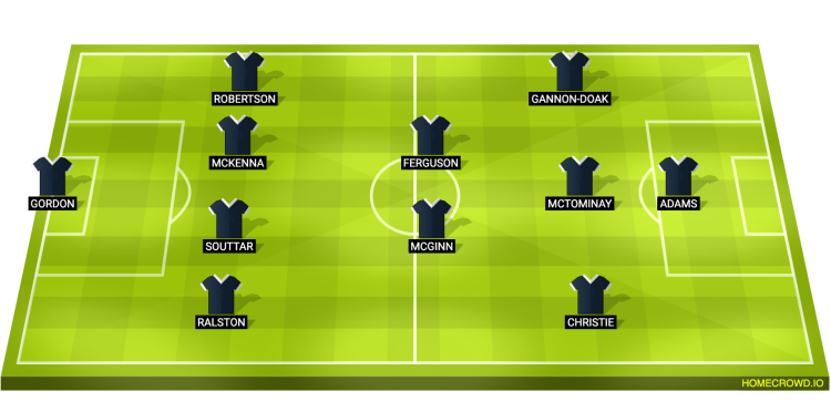 Probable Lineup (4-2-3-1): Gordon; Ralston, Souttar, McKenna, Robertson; McGinn, Ferguson; Christie, McTominay, Gannon-Doak; Adams