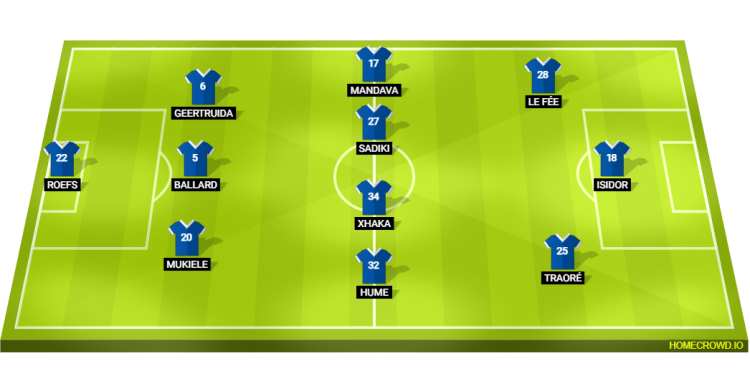 Probable Lineup (3-4-3): Roefs; Mukiele, Ballard, Geertruida; Hume, Xhaka, Sadiki, Reinildo; Traore, Isidor, Le Fee