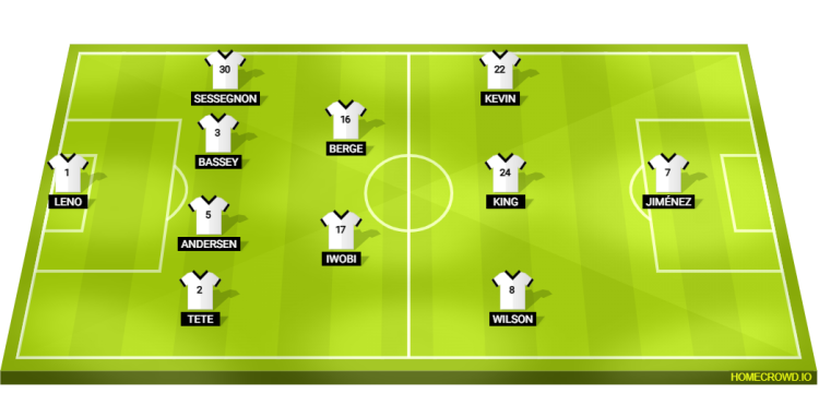 Probable Lineup (4-2-3-1): Leno; Tete, Andersen, Bassey, Sessegnon; Iwobi, Berge; Wilson, King, Kevin; Jimenez