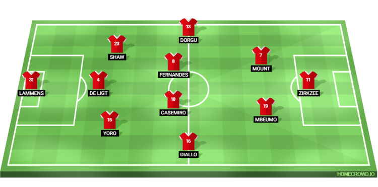 Predicted Manchester United XI: Lammens; Yoro, de Ligt, Shaw; Amad, Casemiro, Bruno Fernandes, Dorgu; Mbeumo, Mount; Zirkzee
