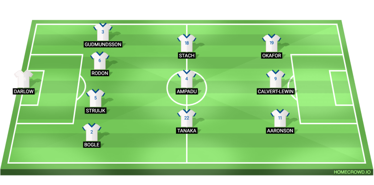 Probable Lineup (4-3-3): Darlow; Bogle, Struijk, Rodon, Gudmundsson; Stach, Ampadu, Tanaka; Aaronson, Calvert-Lewin, Okafor