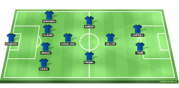 Leon Avdullahu will be the defensive midfielder, who will shield the backline. Wouter Burger and Grischa Promel will take up the role of two central midfielders in front of him, while Fisnik Asllani will feature in the number ten role. Finally, Bazoumana Toure will partner with Tim Lemperle in the strike pairing.