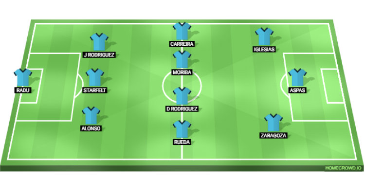 Probable Lineup (3-4-3): Radu; Alonso, Starfelt, Javi Rodriguez; Rueda, Damian Rodriguez, Moriba, Carreira; Zaragoza, Iglesias, Aspas