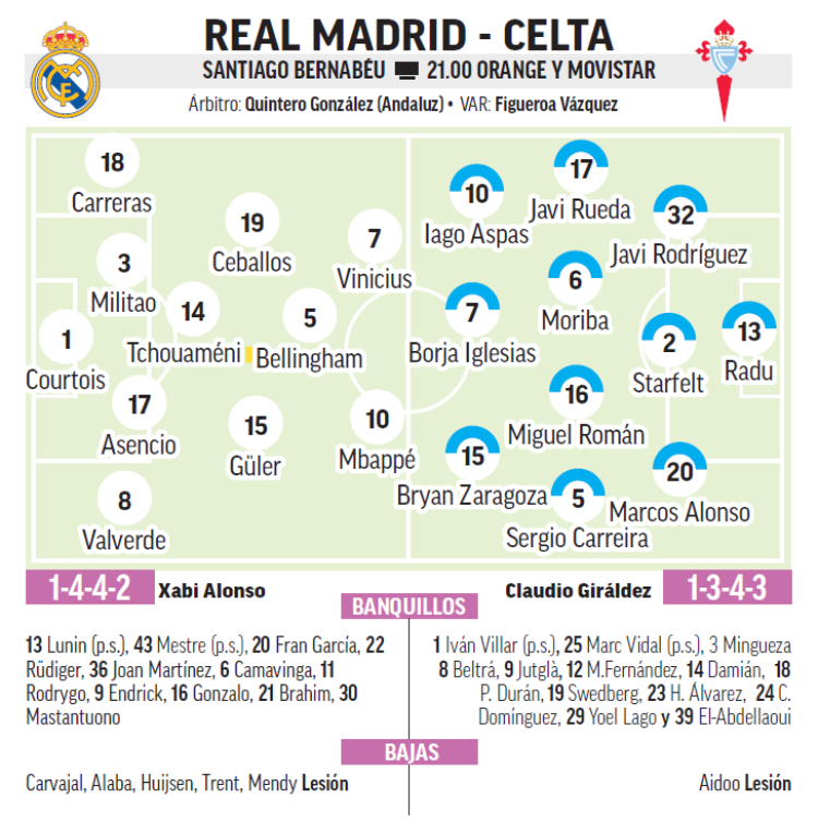Real Madrid will be hoping to secure the victory required to return to within one point of Barcelona when they host Celta Vigo at the Bernabeu on Sunday. Xabi Alonso’s side got their first La Liga win in five last time out against Athletic Club, and they will hope to follow it up on home soil.