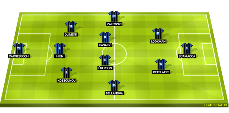 Probable Lineup (3-4-2-1): Carnesecchi; Kossounou, Hien, Djimsiti; Bellanova, Ederson, Pasalic, Zalewski; De Ketelaere, Lookman; Scamacca