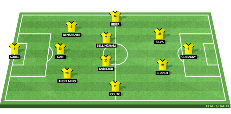 Probable Lineup (3-4-2-1): Kobel; Anselmino, Can, Bensebaini; Couto, Sabitzer, Bellingham, Beier; Brandt, Silva; Guirassy