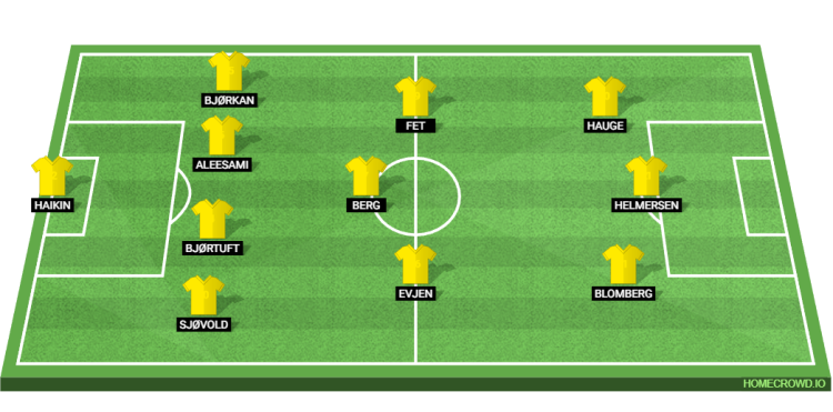 Probable Lineup (4-3-3): Haikin; Sjovold, Bjortuft, Aleesami, Bjorkan; Berg, Evjen, Fet; Blomberg, Helmersen, Hauge