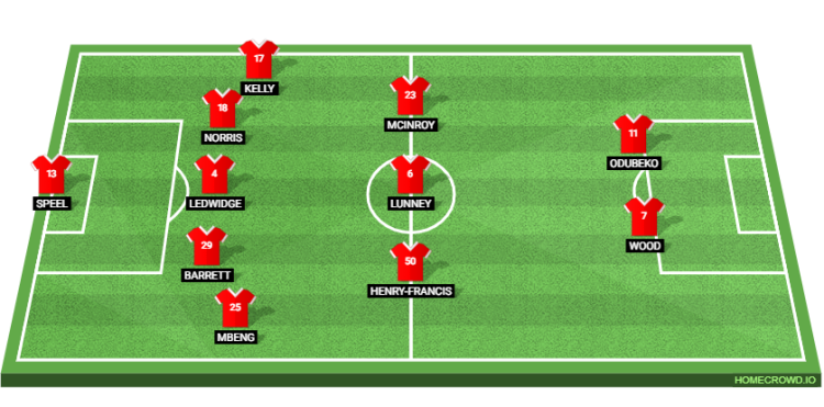 Probable Lineup (5-3-2): Speel; Mbeng, Barrett, Ledwidge, Norris, Kelly; Henry-Francis, Lunney, McInroy; Wood, Odubeko