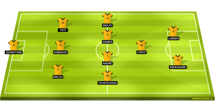 Probable Lineup (3-4-1-2): Johnstone; Krejci, Agbadou, Toti; Tchatchoua, Gomes, Andre, Wolfe; Lopez; Arokodare, Strand Larsen