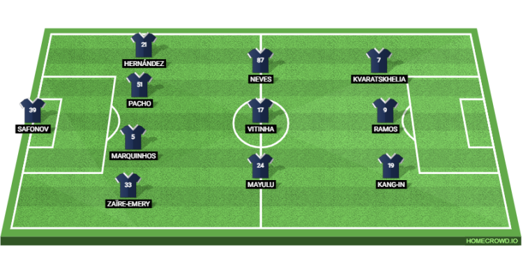 Probable Lineup (4-3-3): Safonov; Zaire-Emery, Marquinhos, Pacho, Hernandez; Mayulu, Vitinha, Neves; Kang-in, Ramos, Kvaratskhelia
