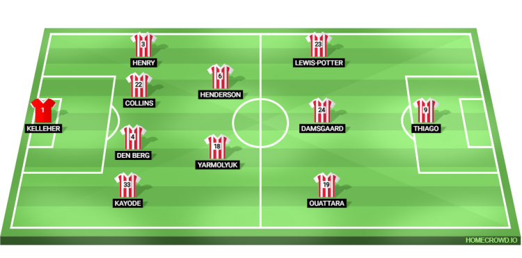 Probable Lineup (4-2-3-1): Kelleher; Kayode, van den Berg, Collins, Henry; Yarmolyuk, Henderson; Ouattara, Damsgaard, Lewis-Potter; Thiago