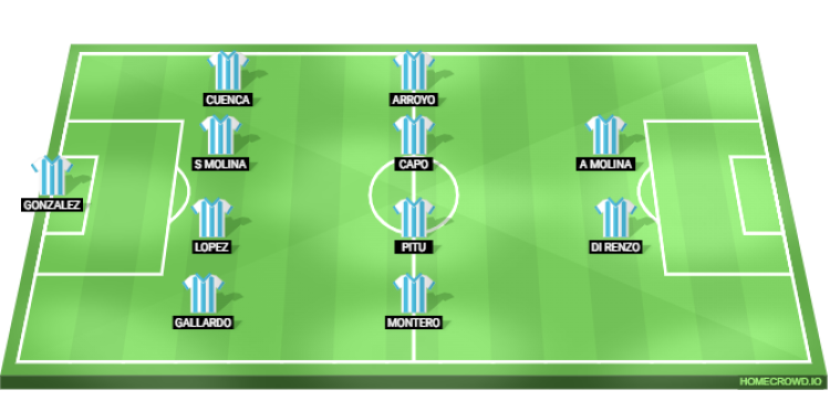 Probable Lineup (4-4-2): Gonzalez; Gallardo, Lopez, Sergi Molina, Cuenca; Montero, Pitu, Capo, Arroyo; Di Renzo, Arturo Molina