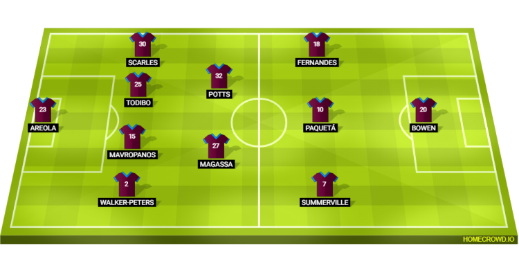 Probable Lineup (4-2-3-1): Areola; Walker-Peters, Mavropanos, Todibo, Scarles; Magassa, Potts; Summerville, Paqueta, Fernandes; Bowen