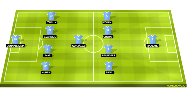 Probable Lineup (4-1-4-1): Donnarumma; Nunes, Dias, Gvardiol, O’Reilly; Gonzalez; Bernardo Silva, Reijnders, Cherki, Foden; Haaland