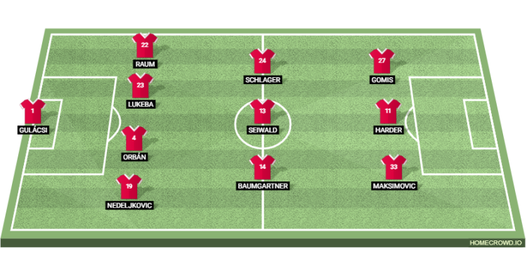 Probable Lineup (4-3-3): Gulacsi; Nedeljkovic, Orban, Lukeba, Raum; Schlager, Seiwald, Baumgartner; Maksimovic, Harder, Gomis