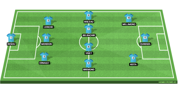 Probable Lineup (3-4-3): Renou; Ernault, Moisdon, Leriche; Bremond, Vinet, Belbachir, Bisleau; Keita, Millimono, Diawara