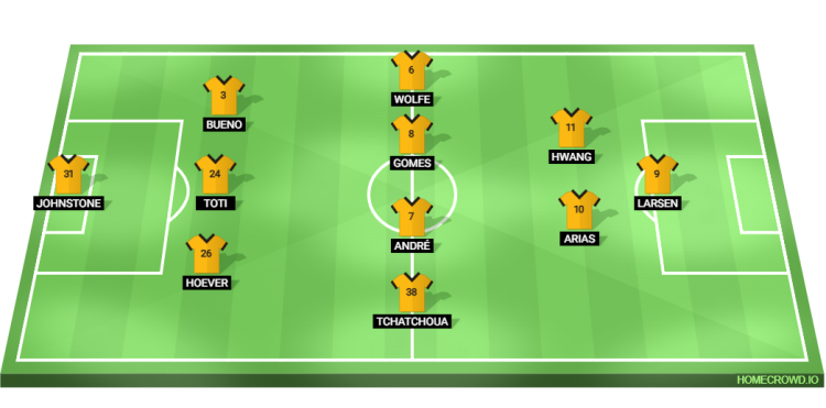 Probable Lineup (3-4-2-1): Johnstone; Hoever, Toti Gomes, Bueno; Tchatchoua, Andre, Joao Gomes, Wolfe; Arias, Hwang; Strand Larsen