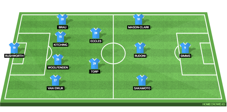 Probable Lineup (4-2-3-1): Rushworth; van Ewijk, Woolfenden, Kitching, Brau; Torp, Eccles; Sakamoto, Rudoni, Mason-Clark; Simms