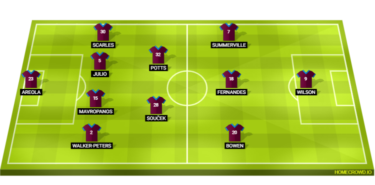 Probable Lineup (4-2-3-1): Areola; Walker-Peters, Mavropanos, Julio, Scarles; Soucek, Potts; Bowen, Fernandes, Summerville; Wilson