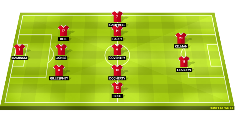 Probable Lineup (3-5-2): Kaminski; Gillesphey, Jones, Bell; Bree, Docherty, Coventry, Carey, Campbell; Leaburn, Kelman