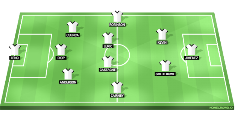 Probable Lineup (3-4-2-1): Leno; Diop, Anderson, Cuenca; Castagne, Lukic, Cairney, Robinson; Smith Rowe, Kevin; Jimenez
