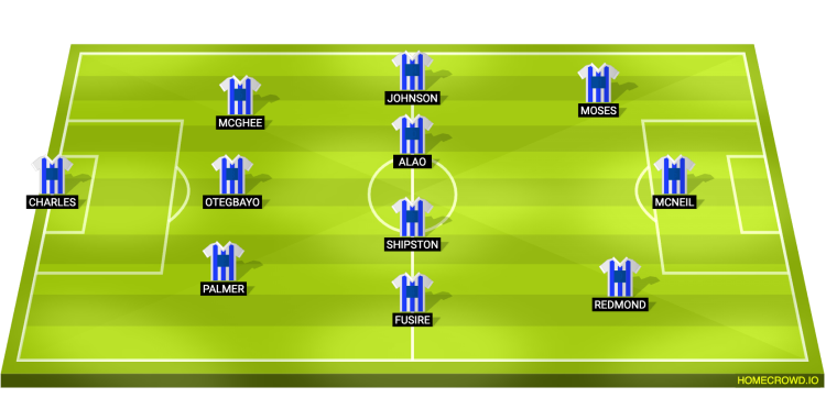 Probable Lineup (3-4-3): Charles; Palmer, Otegbayo, McGhee; Fusire, Shipston, Alao, Johnson; Redmond, McNeill, Moses