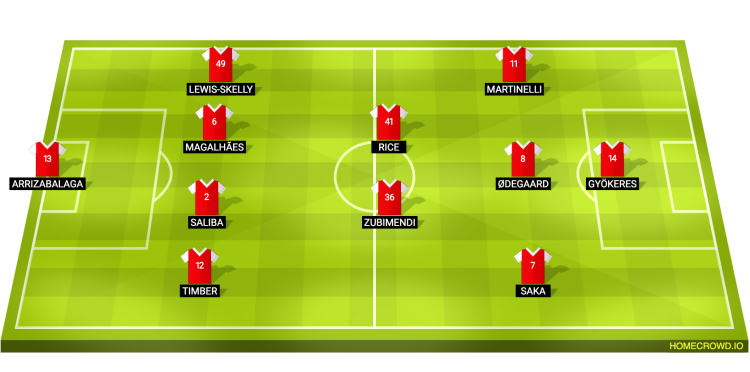 Probable Lineup (4-2-3-1): Kepa; Timber, Saliba, Gabriel, Lewis-Skelly; Zubimendi, Rice; Saka, Odegaard, Martinelli; Gyokeres