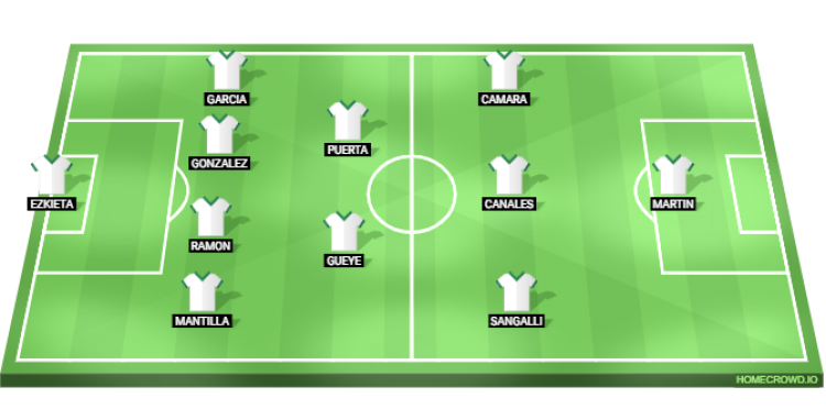 Probable Lineup (4-2-3-1): Ezkieta; Mantilla, Ramon, Gonzalez, Garcia; Gueye, Puerta; Sangalli, Canales, Camara; Martin